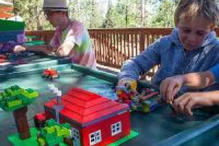 Campers looking for a break in the action head to the Lakeside Porch for a chance to relax in the shade and work with Lego bricks! Building with Lego has become a popular activity and staff are constantly amazed at camper imagination and what they come up with...Our campers are certainly The Builders of Tomorrow!